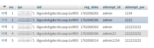 관리자 페이지 접근 시도를 5회 이상일때 접근을 막도록 하는 간단한 코드내용이다.