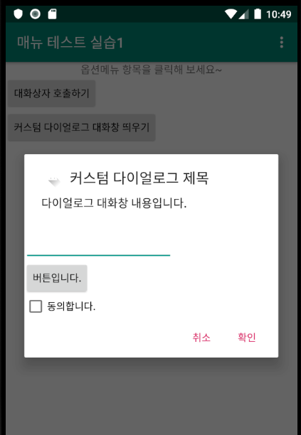 50라인의 AlertDialog는 커스텀 다이얼로그 동작 부분이다.