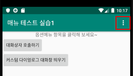 android:layout_height="wrap_content" android:text="옵션메뉴 항목을 클릭해 보세요~"/>