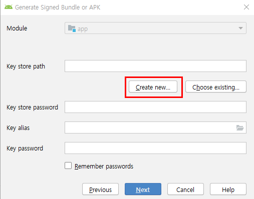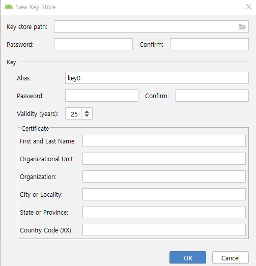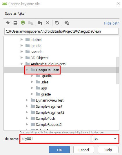 나는 key001 이라는 이름으로 하나 만들고 원하는 앱의 root 부분에 위치하도록 하여 저장해놓았다.