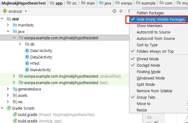 그러면 위의 그림과 같이 패키지명들이 주르륵 다 펼쳐집니다.