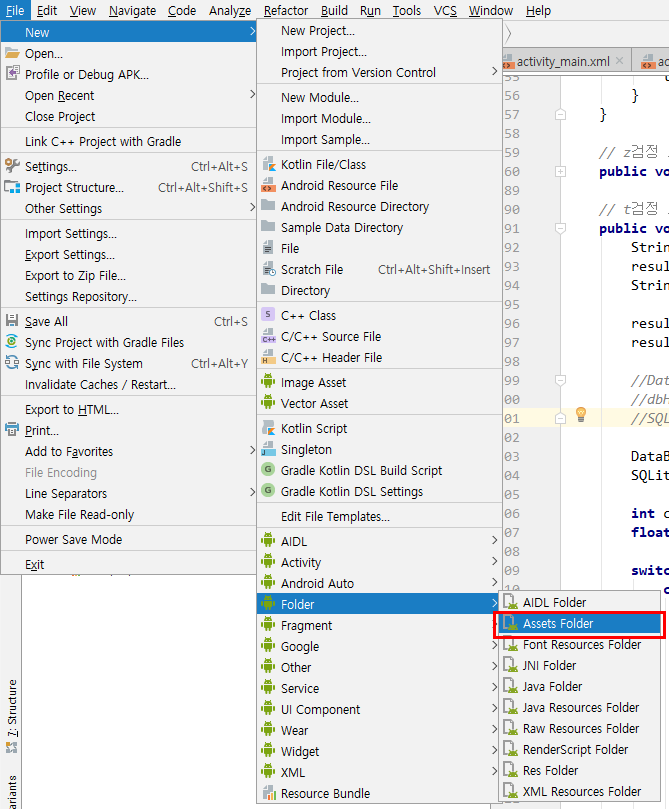 1. asstes 폴더를 생성해 놓는다. 앱설치시 자동 따라온다. 이안에 db파일을 넣어둔다.