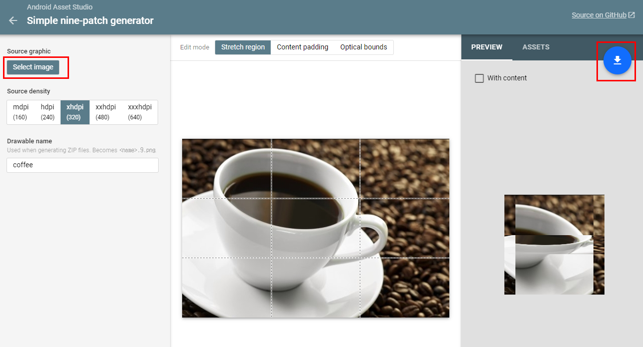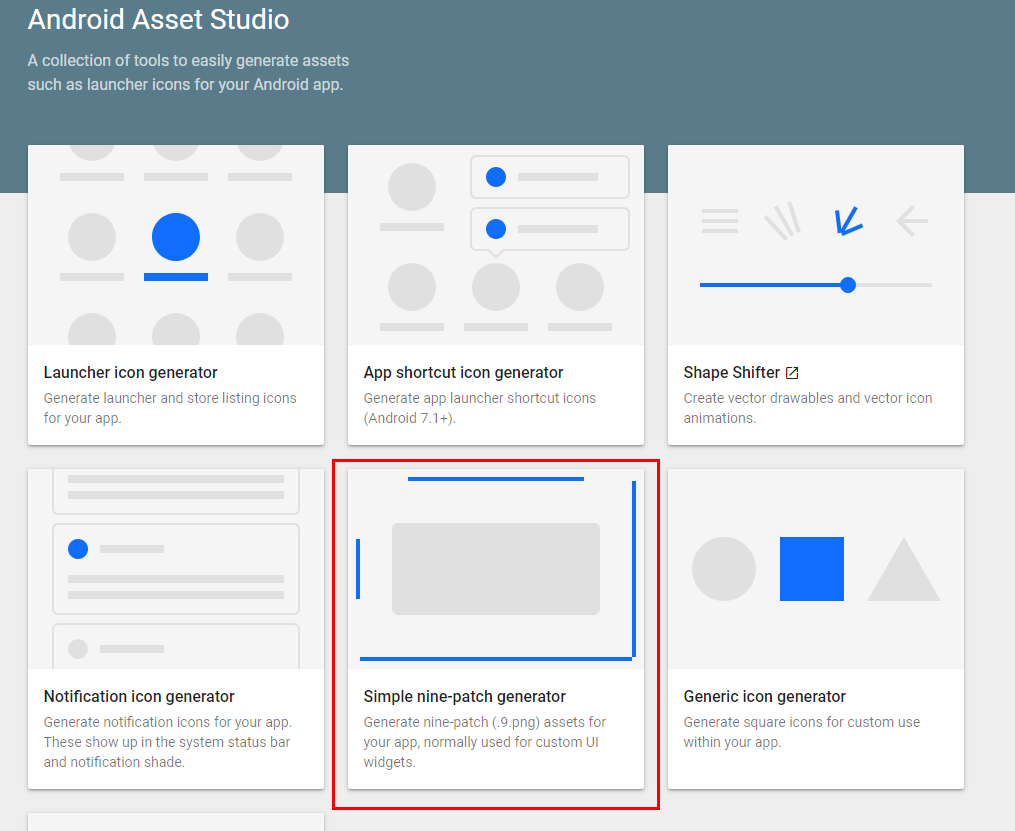 우리는 여기서 Simple nine-patch generator 코너를 이용한다.