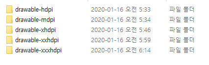 여기에 아까 준비해둔 5가지의 각각 이미지폴더(drawable-hdpi 등등) 들을 복사하여 붙인다.