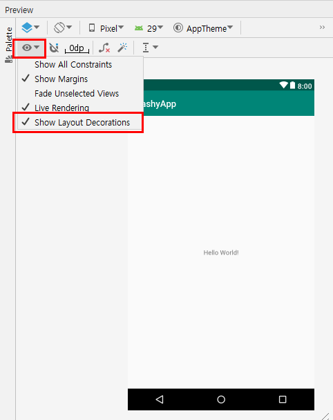 Show Layout Decorations 체크하자