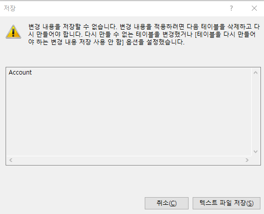[MS-SQL] 변경 내용을 저장할 수 없습니다. 옵션 설정 변경 본문