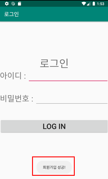 Toast.makeText(getApplicationContext(),"로그인 성공!",Toast.LENGTH_SHORT).show();