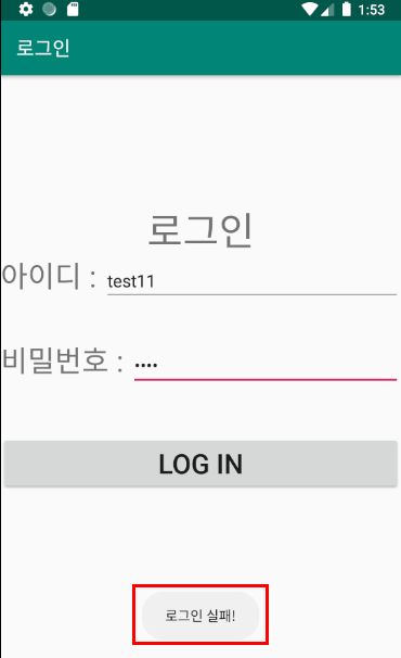 Toast.makeText(getApplicationContext(),"로그인 실패!",Toast.LENGTH_SHORT).show();