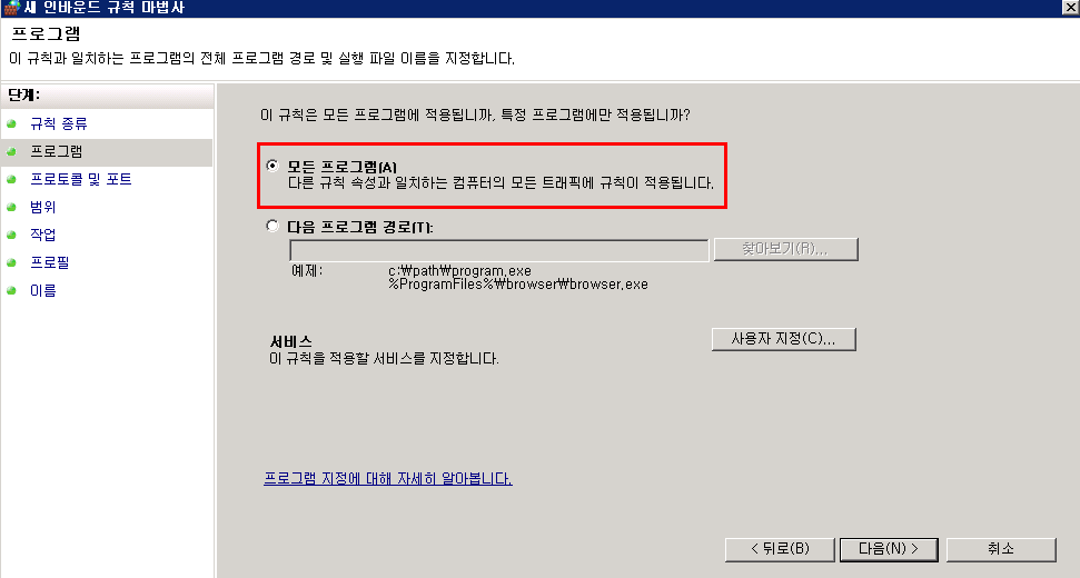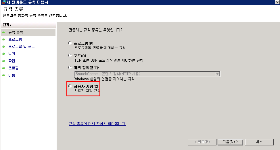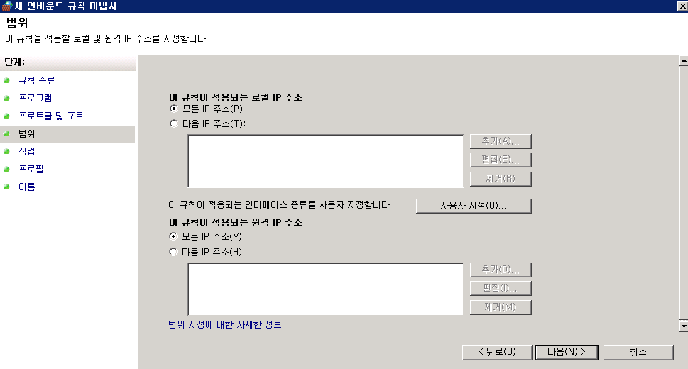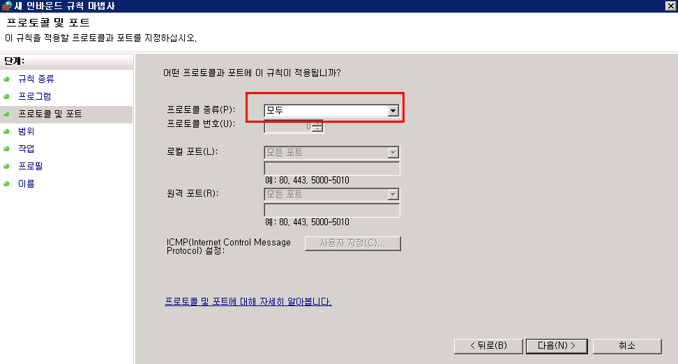인바운드 규칙으로 새규칙을 만들어서 간단히 처리하면 된다.