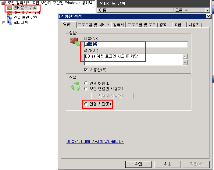 [윈도우서버] 방화벽상에서 ip 차단하기 본문