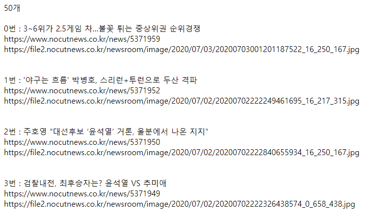 title 과 url 링크, image 부분을 파싱해왔다.