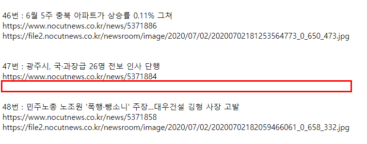 그런데, 47번 기사내용을 보면 image 내용의 노드가 아예 없이 xml 코드가 있는 경우가 있었다.