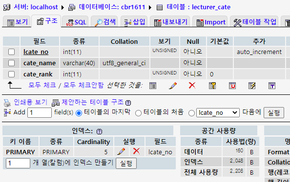 위의 그림예에서, 방과후지도사 (lcate_no 가 2번) 를 클릭하여 검색하면 해당 강사 목록을 불러오는 쿼리는 아래와 같다.