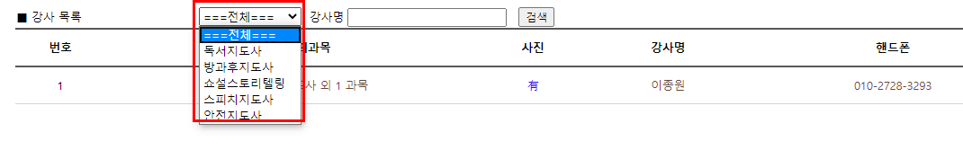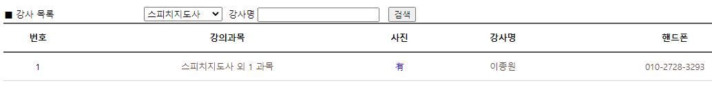 마지막으로 PHP 형태로 간략히 종합적인 강사목록 소스를 간추려보았다.