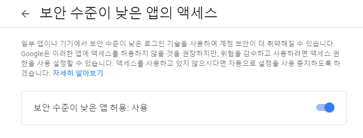 지메일 주소와, 비번이 정확한데도 발송이 안되는 에러메세지를 발견할 때,