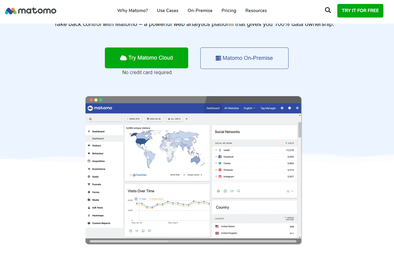 Liberating Web Analytics. Star us on Github? +1. Matomo is the leading open alternative to Google Analytics that gives you full control over your data. Matomo lets you easily collect data from webs...