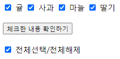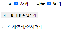 <input type="checkbox" id="item4" name="item[]" value="딸기"> <label for="item4">딸기</label>