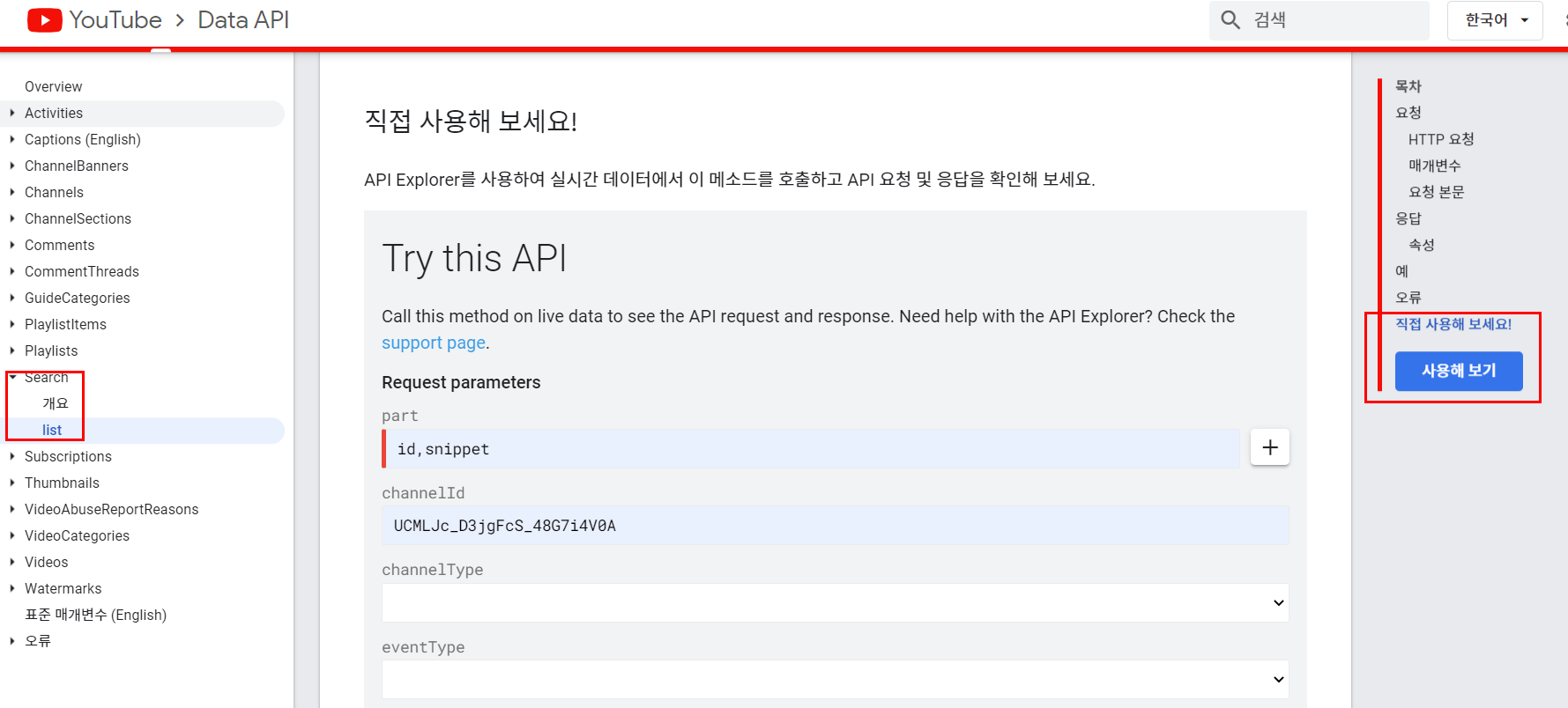 위의 웹주소를 보면 채널ID 값을 꼭 기억해두도록 하자.