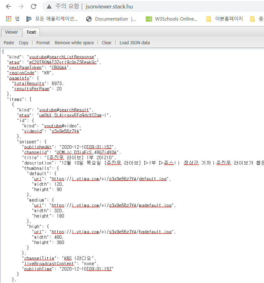 items 항목을 눈여겨 보고 Parsing 처리하면 되겠다. ~
