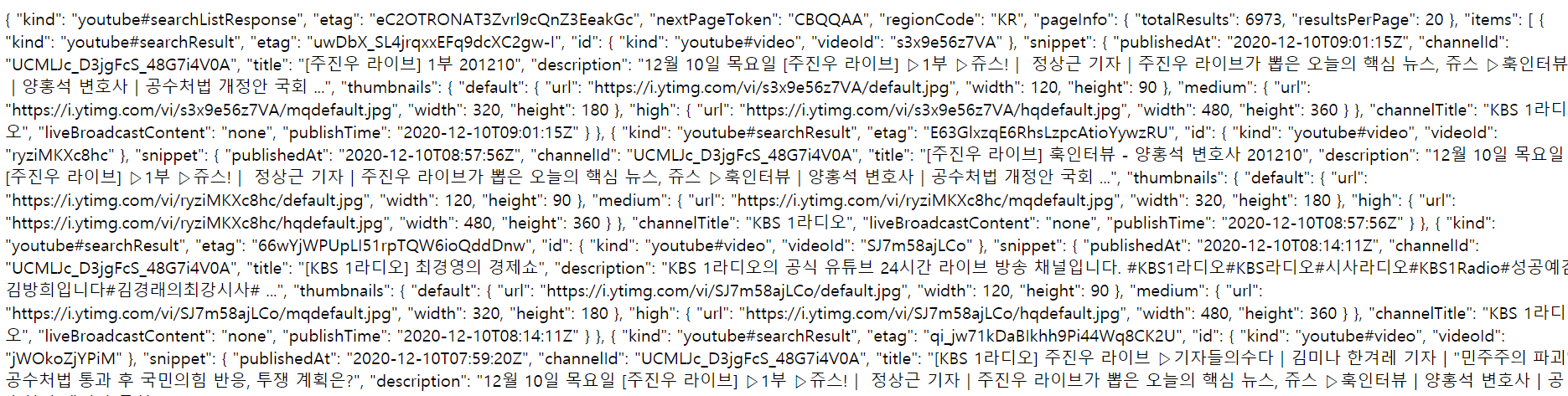 예를 들어 KBS 1라디오 채널의 최신 영상을 땡겨오는 소스 작업을 해본다.