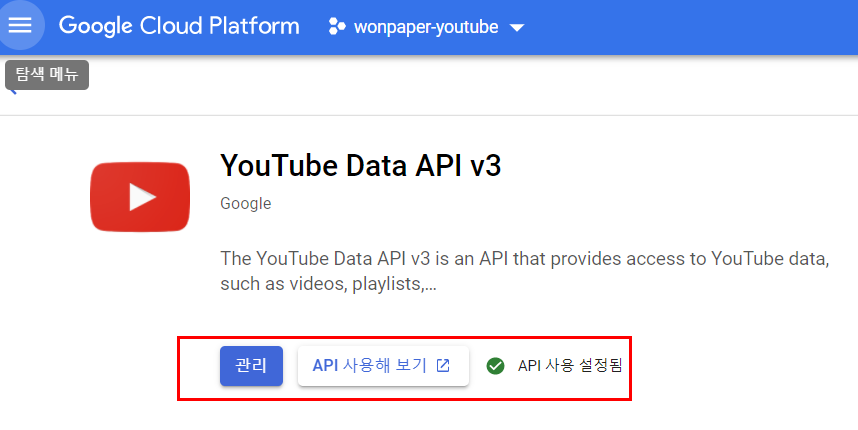 이제 Youtube API 키를 생성했으니, 본격적으로 API Document 를 살펴보며 코딩해보도록 하자.