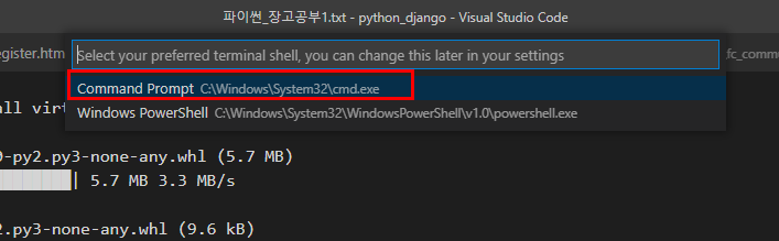 웹개발자 워니 2021. 3. 18. 22:04VSCode 에서 Django 가상환경 설정시에 가상환경을 만들고,