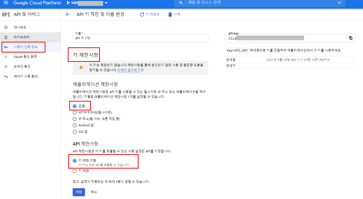 1번, 2번으로 구글 api 콘솔에서의 설정은 끝났다.