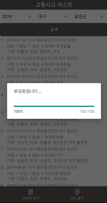 // 로딩중 다이얼로그 소스 부분 (진행바 형태)