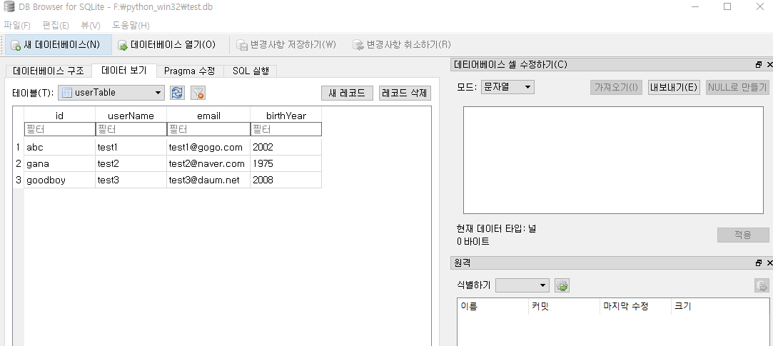 참고하여 소스수정함 : 우재남저 파이썬 for Beginner , Chapter13 데이터베이스 소스