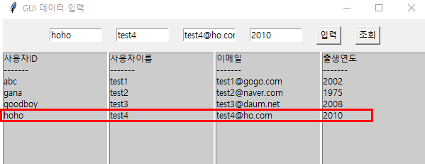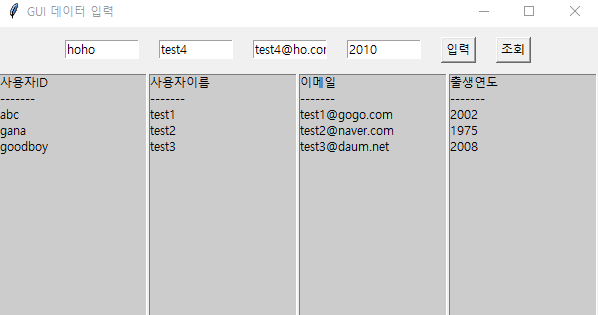 strData1.append("사용자ID");strData2.append("사용자이름");strData3.append("이메일");strData4.append("출생연도")