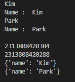 print(user2.__dict__) # 네임스페이스 확인 {'name': 'Park}