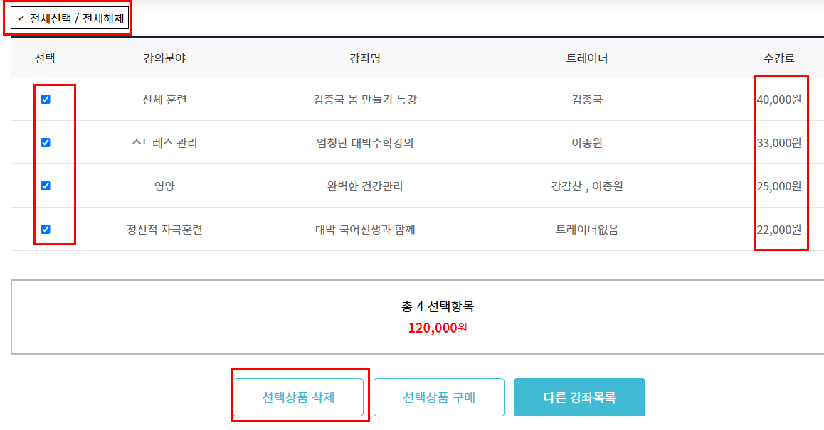 [javascript] checkbox 전체선택, 전체해제, 선택한 checkbox 내용확인하기 2 - 장바구니 구현하기