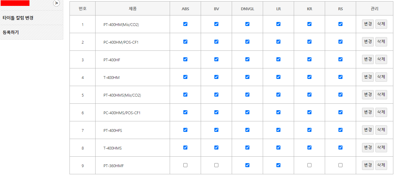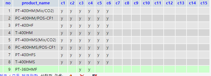 [ materials_mod.php ] - 데이터 한줄 체크박스 정보 변경 ( 칼럼 동적 처리)