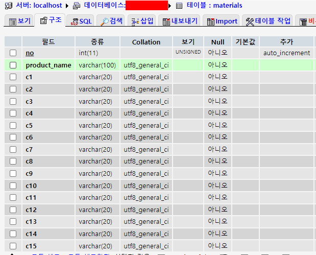 [ materials_title.php ] - 데이터 칼럼 정보 변경 틀페이지
