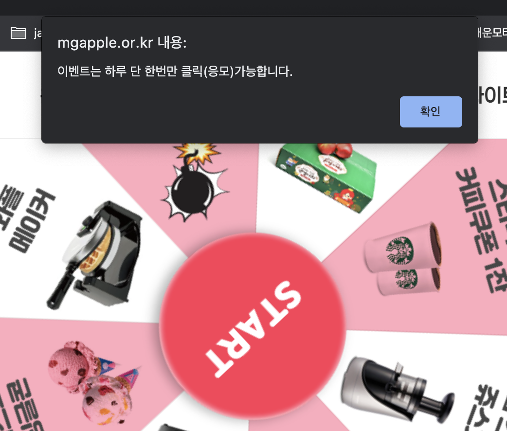 alert("이벤트는 하루 단 한번만 클릭(응모)가능합니다.");