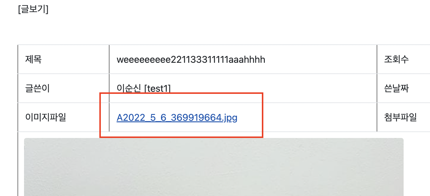 실제 게시판 뷰 상세페이지에서 다운로드 관련 소스를 클릭하면 파일 다운로드가 완료된다.