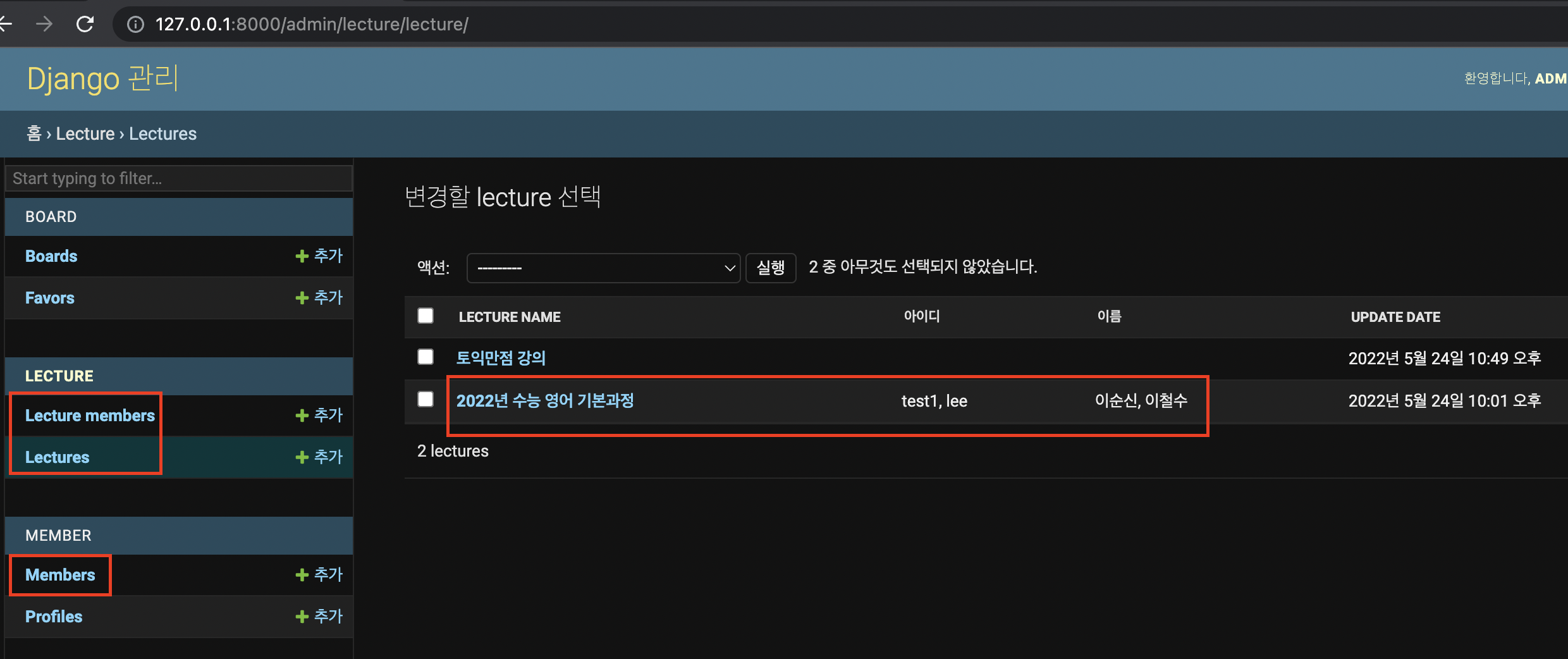 list_display = ('lecture_name', 'get_members_mem_id', 'get_members_name', 'update_date')