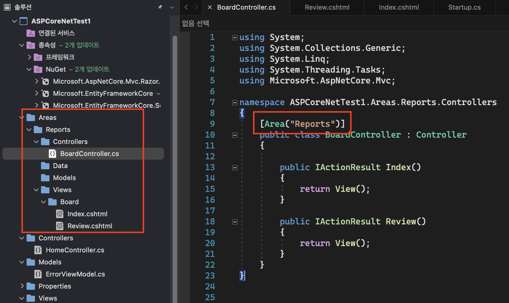 [ASP.Net Core MVC] Area 형태로 묶어서 사용하기 본문