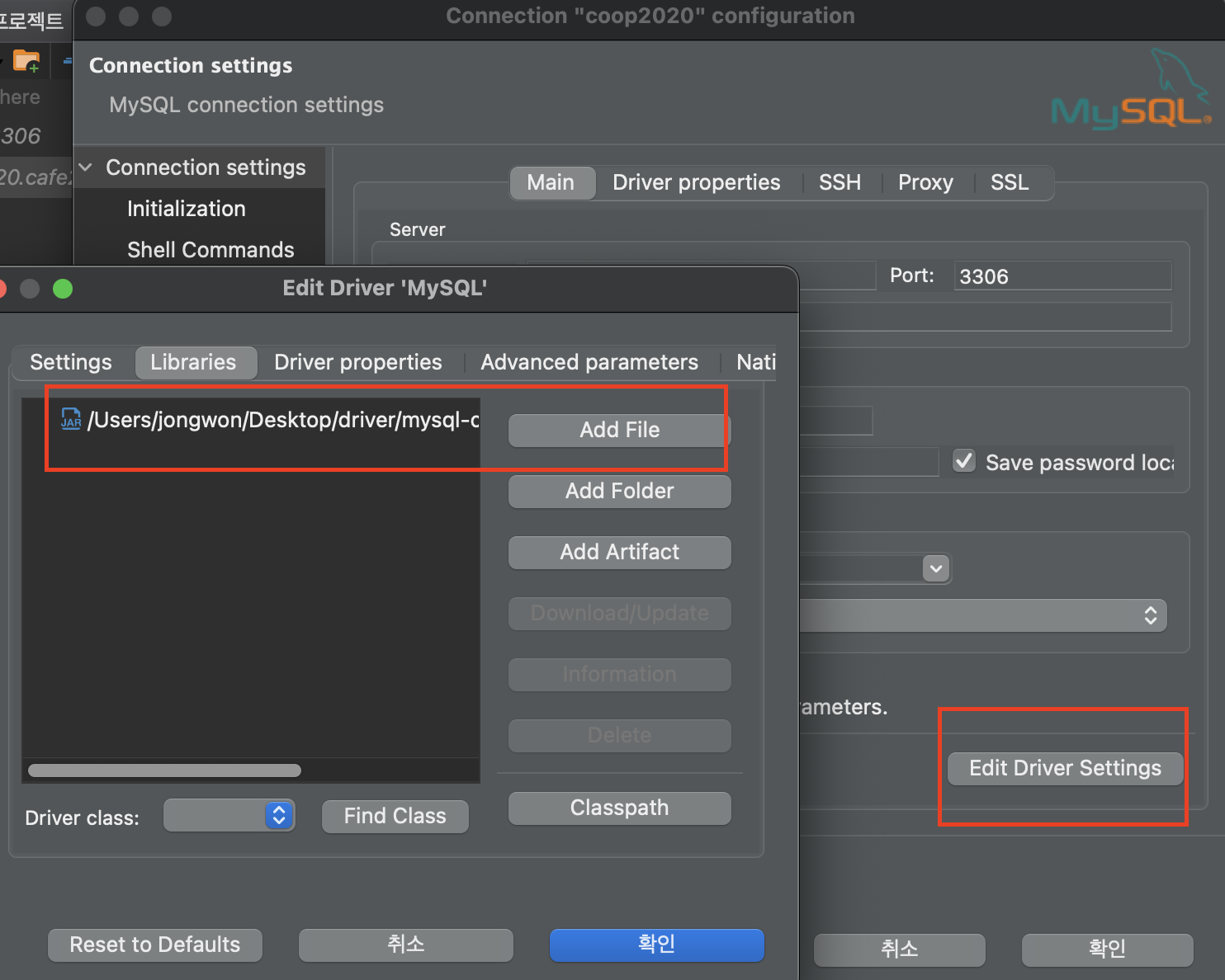 Mysql connector 드라이버를 기존 버전으로 바꾸어 별도로 다운로드 받아놓자.