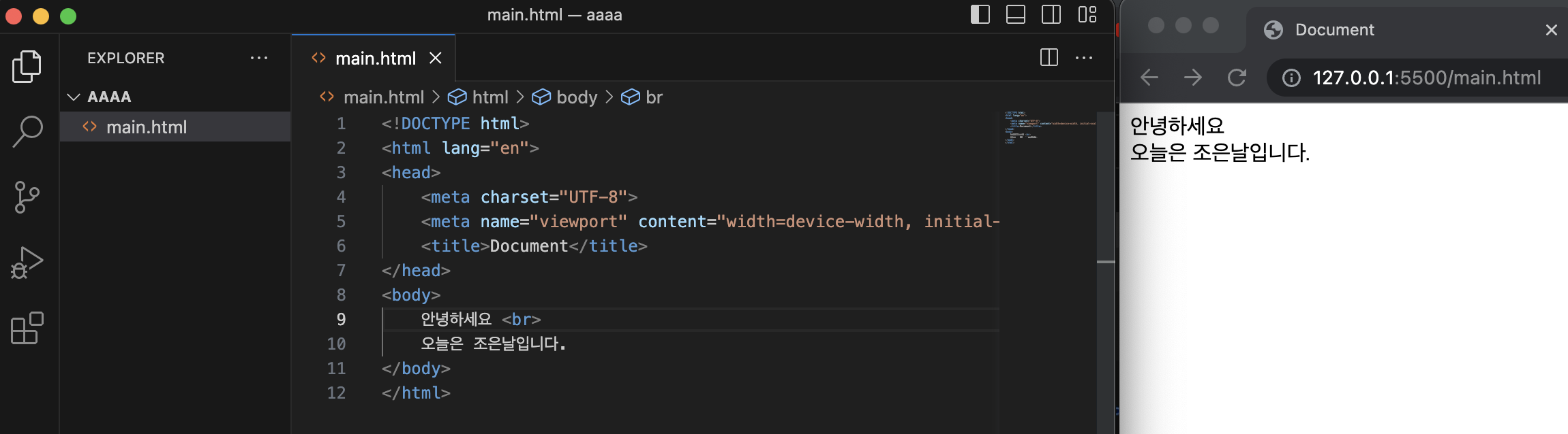 이제 main.html 테스트용 html 문서를 만들고,