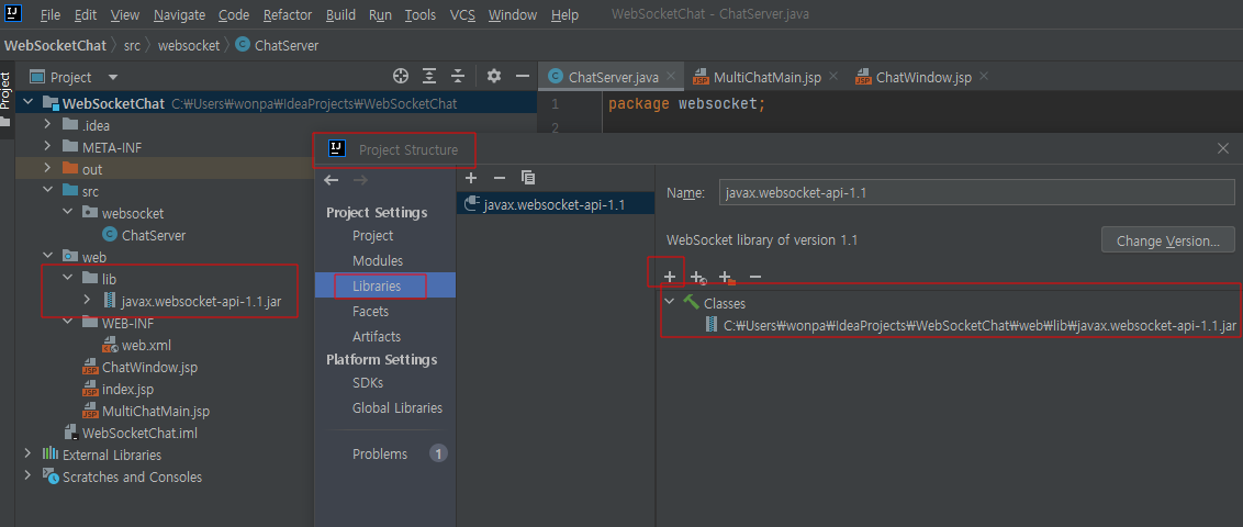 그리고 필자는 websocket 외부 jar 파일을 다운로드 받아서 아래와 같이 연동하였다.