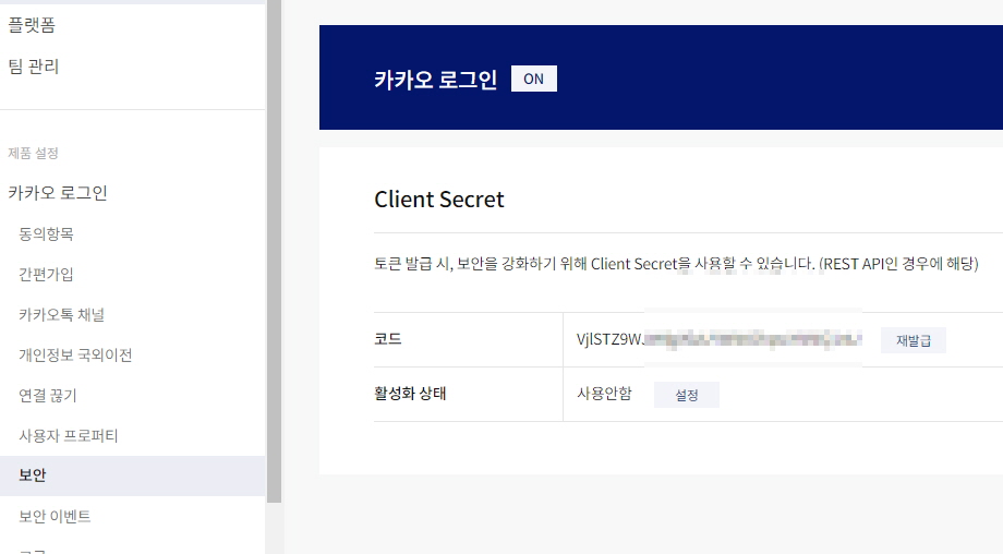 그리고, Client Secret 키도 추가하려면 설정해주면 되는데, 선택사항이다.