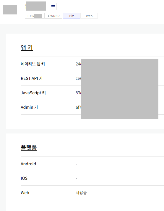 관련 키값들이 필요하다.