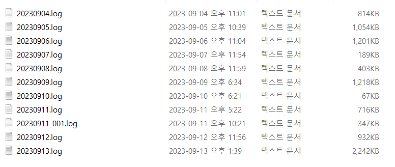 로그 내용이 ../logs/ 폴더에 날짜별로 주욱 쌓인다.