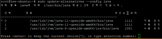 현재 설치된 자바 버전중에 변경 가능한 버전 확인하고 선택하기