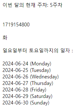// 현재 주의 일요일부터 토요일까지의 일자 출력